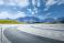Panel Szklany do Łazienki - Empty curved stone floor offering a panoramic view of green hills and majestic mountains under a... #1464860828