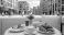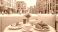 Panel Szklany do Łazienki - Outdoor coffee table in a lively city square with cappuccino, croissants, orange juice, and small... #1541130383