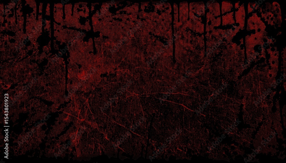 • dark grunge halloween blood splatter background with dripping red texture and distressed canvas overlay for horror poster, web design, or branding element