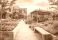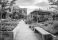 • Modern urban plaza with wooden walkway and lush green community garden