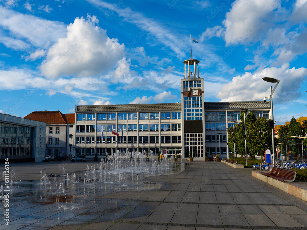 • 2024-09-27; Fountain. Rynek Staromiejski Old Town Market square with Town Hall Ratusz in historic old town quarter of Koszalin