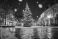 Panel Szklany do Łazienki - A festive street scene at night with a large Christmas tree wrapped in golden lights and red... #1612930658