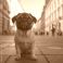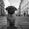 • Pug playing in a European city square, historic architecture in the background, charming and lively, UHD 8K