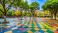 Panel Szklany do Łazienki - Colorful patterned plaza with trees and buildings #1631812908