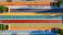 • Aerial view of colorful mosaic pavement with trees and seating areas
