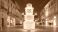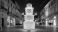 Panel Szklany do Łazienki - A large, illuminated snowman, crafted from plastic bottles, stands in a bustling city street at... #1676546675