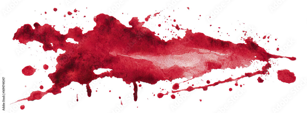 • Red blood stain with splatter and drops, isolated on transparent cutout background