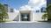 • Modern Entrance of a Building with Lush Greenery and Sky