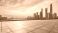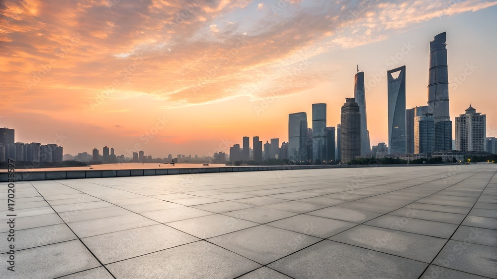 • empty square floor and city skyline with modern building