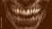 • Close-up of a grotesque evil creature's smile, revealing decaying, sharp fangs and horrifying bloody flesh on a dark background