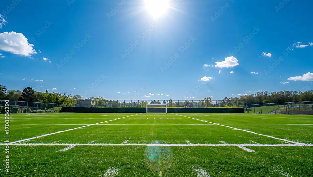 Panel Szklany do Łazienki - 広大な競技場と抜けるような青空が描く開放感がスポーツブランドや学校広報の背景にぴったりなシンプルなデザインです.生成AI #1708936290