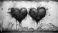 • two bloody hearts merge on a white wall grunge design