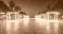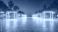 • Neon Lit Cube Installations Along a City Plaza at Night Time, Illuminated Colorful Light Festival, Cityscape with Trees Under a Clear Sky at Dusk