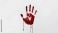 • Isolated bloody handprint featuring a drip pattern on a white backdrop, safety concern