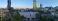 • Aerial panorama of Skanderbeg Square at Dawn surrounded by modern towers and city landmarks.