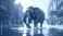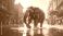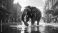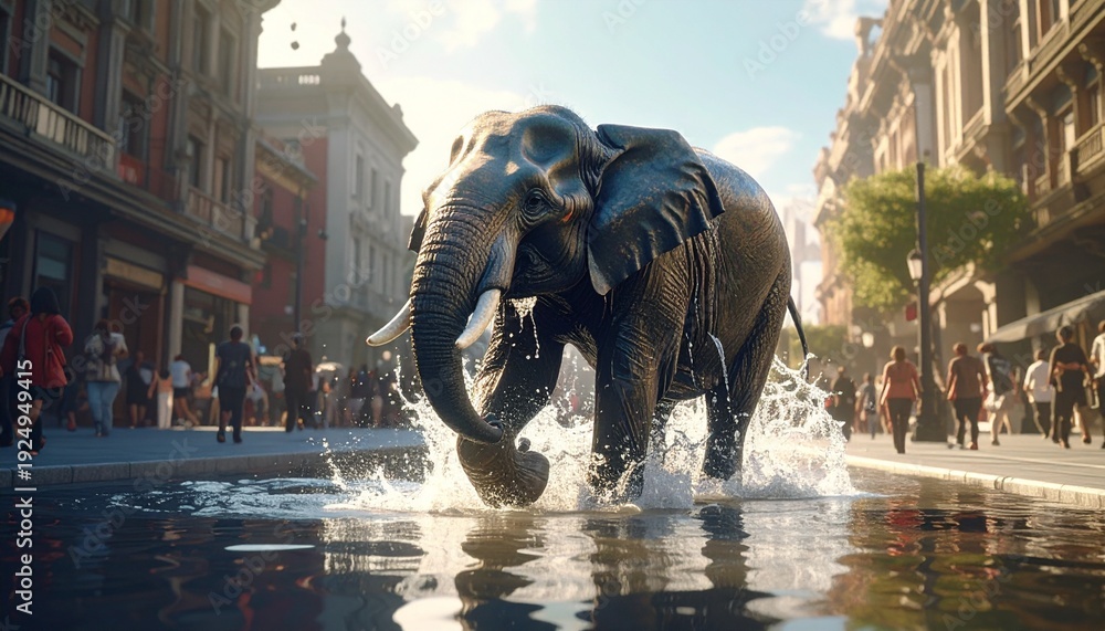 Panel Szklany do Łazienki - Elephant made of water walks through urban plaza with people around. #1924949415