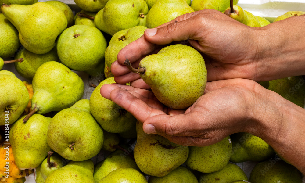 Panel Szklany do Łazienki - Pyrus communis - Delicious pears in hands #513849042
