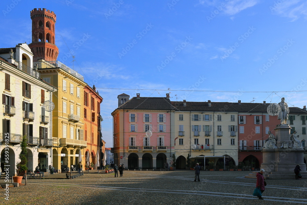• piazza cavour di vercelli in italia, cavour square of vercelli in italy