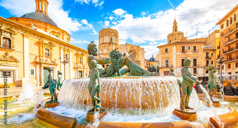 Panel Szklany do Łazienki - Valencia old town scenic skyline, Spain #587342391