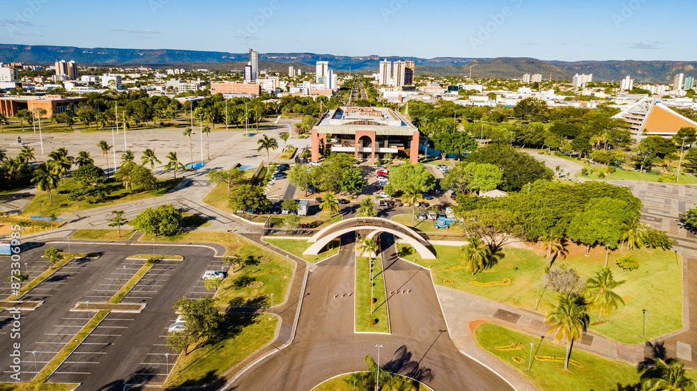• Palmas, Tocantins. Aerial view of Palácio Araguaia and Praça dos Girassóis