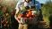 Mężczyzna trzymający w rękach kosz z warzywami. Ogrodnictwo, uprawa warzyw, jedzenie organiczne