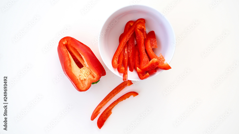Panel Szklany Papryczka - Świeża pokrojona czerwona papryka na białym tle #249693492