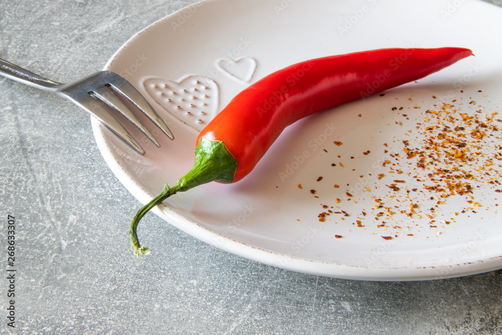 Panel Szklany Papryczka - Papryka chilli na talerzu z widelcem #268633307