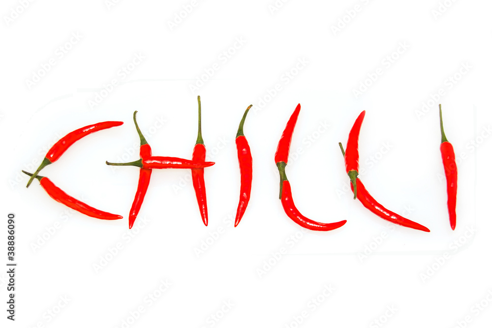 Panel Szklany Papryczka - Napis CHILLI z papryczek #38886090