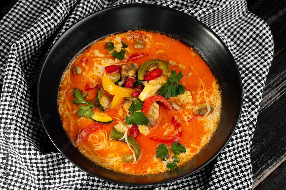 Panel Szklany Papryczka - zupa tajska, zupa, jedzenie, dania, posiłek, obiad, jarzyna, pomidor, zdrowa, jarzyna, gotowanie,... #468978847