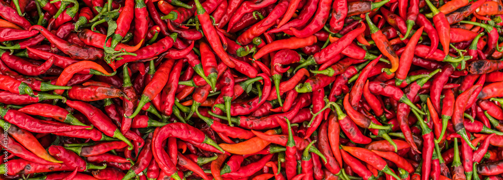 Panel Szklany Papryczka - Czerwona papryka Chili, piękne naturalne tło gastronomiczne. #473480250