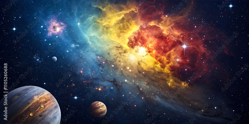 • Celestial Symphony, The Enchanting Beauty of Colorful Nebulae and planets in Deep Space In the vast expanse of the universe lies one of nature’s most breathtaking phenomena