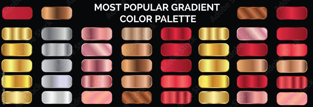 • Metallic gradient foil background. most popular gradient. Gold, Pink gold, Silver and Holographic metal vector template