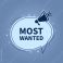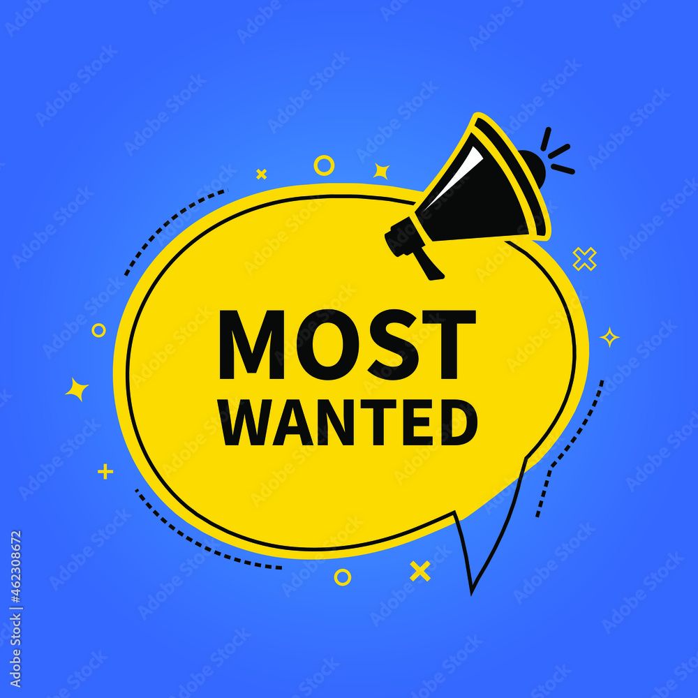 • Vector illustration most wanted on speech bubble banner with megaphone isolated on blue background