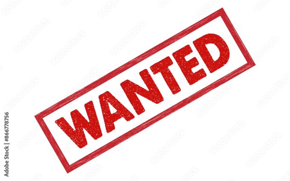 • Wanted red ink rubber stamp sign symbol grunge effect vector illustration design most wanted person criminal case investigation tampon