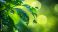 • Vibrant greenery serves as a backdrop for glistening water droplets, suspended in mid-air.