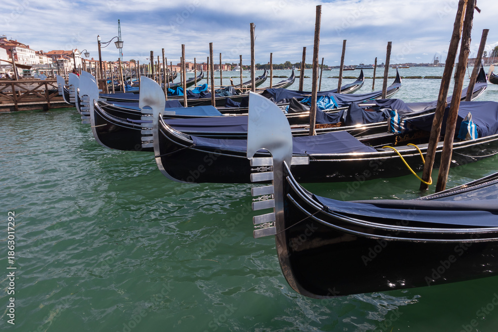 Wenecja - Zacumowane weneckie gondole. #1863017292