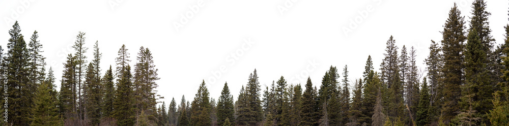 Las - Panorama of spruce forest in the early winter with a transparent sky #1074249278
