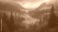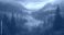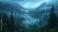 • Misty forest valley at dawn with blue atmospheric lighting.