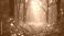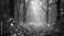 • Enchanted forest path with magical bokeh lights and lush green foliage creating a whimsical fairytale scene