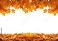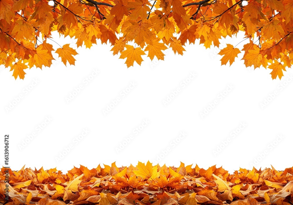 • Autumn maple leaves frame a blank white background with a leaf pile