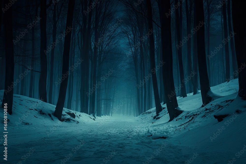Las - Snow-covered forest path at night #1680810886
