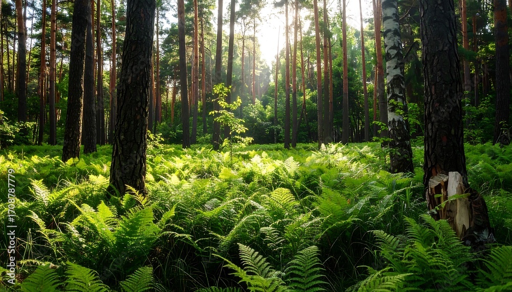Las - Sunlight filtering through a lush fern forest #1708787779