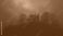 • Spooky Haunted House silhouette at Night in a Creepy fog