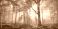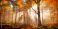 • Enchanting sun rays falling through the mist in a golden forest in autumn. The beauty of nature in vibrant warm autumnal colors of deciduous trees