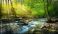 • spring forest nature landscape, beautiful spring stream, river rocks in mountain forest