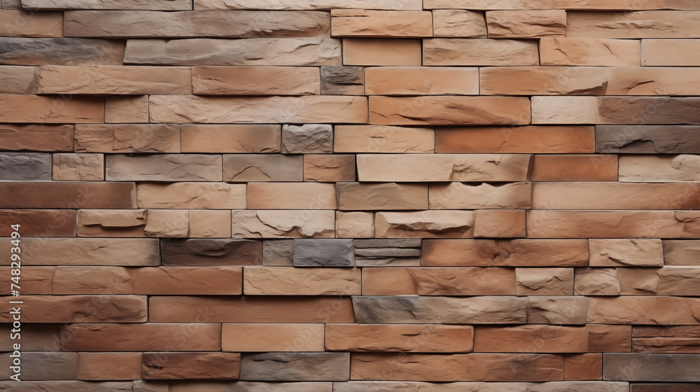 Cegła - Abstrakcyjne ceglane tło - dekoracyjna murowana ściana z cegły z kamienia, tapeta trójwymiarowa.... #748293494