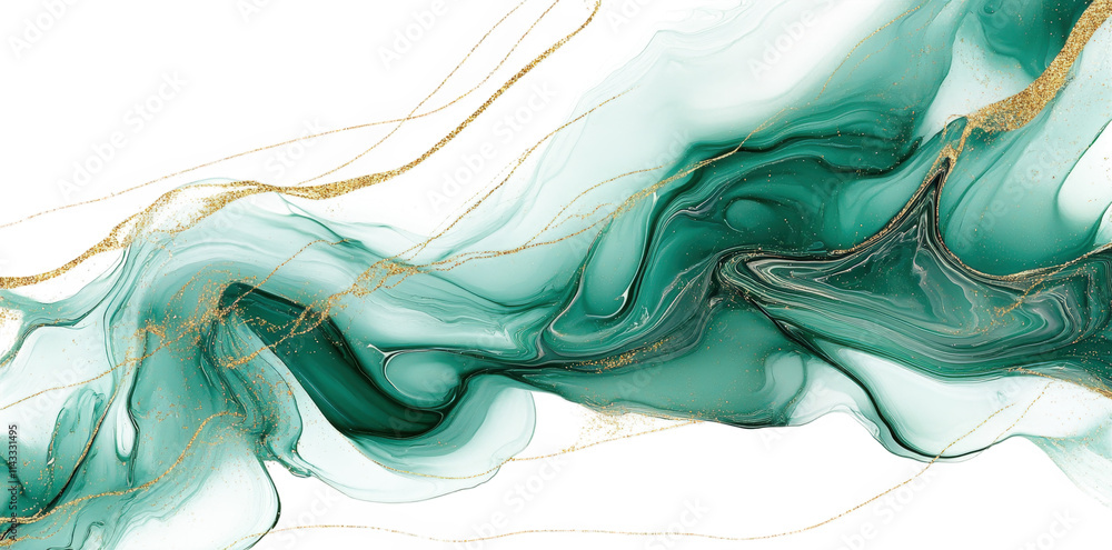 Marmur - abstract green and gold liquid marble texture #1143331495