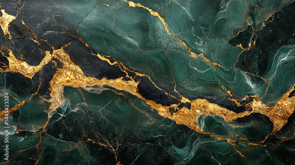 Marmur - Green and gold marble texture background with intricate veins and rich patterns #1445423324