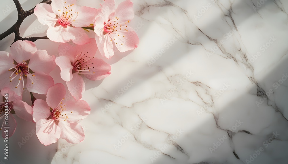Marmur - Delicate pink blossoms atop a marbled surface. #1481445045