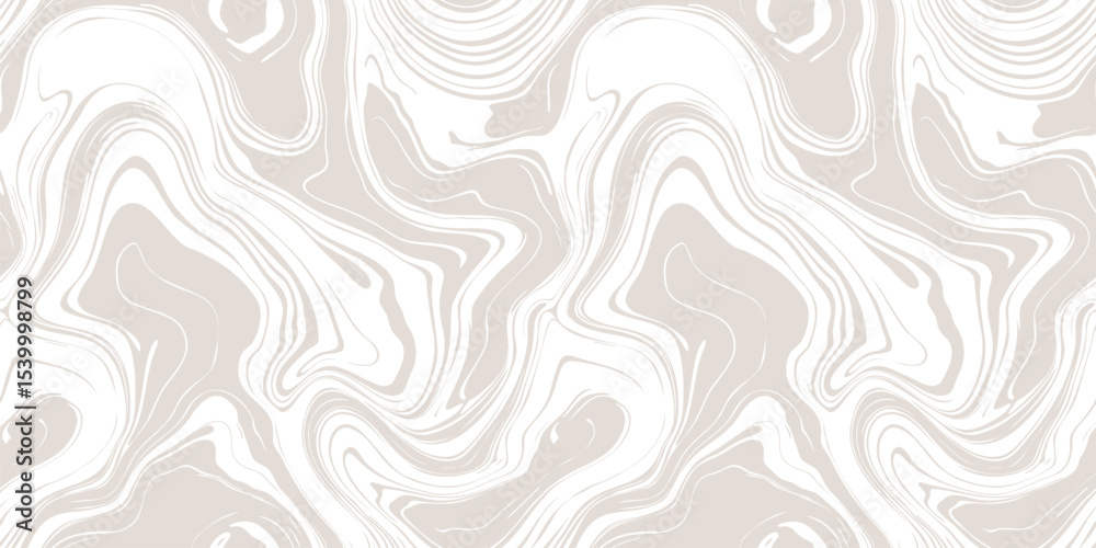 • Vector seamless pattern with fluid organic shapes, liquid lines. Abstract ink stain texture, marble surface. Groovy background with waves, paint, swirl, distorted surface. Subtle beige and white color